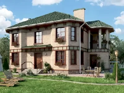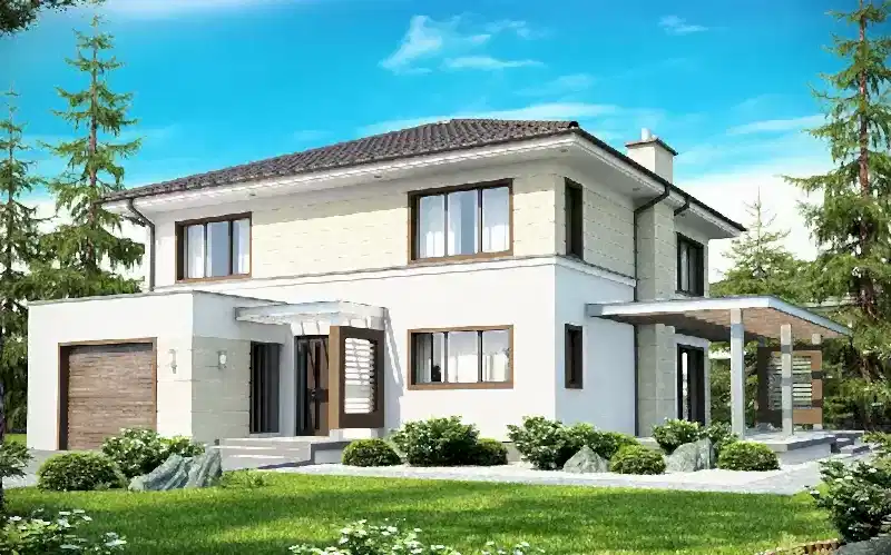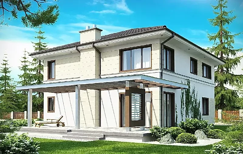Проект "Алфея " - красивый двухэтажный дом для постоянного проживания из газоблока с гаражом, с террасой.Площадь Жандосова, 29 291.15 кв.м. с размерами 12*14.