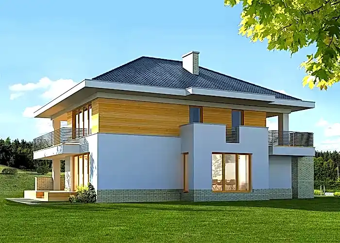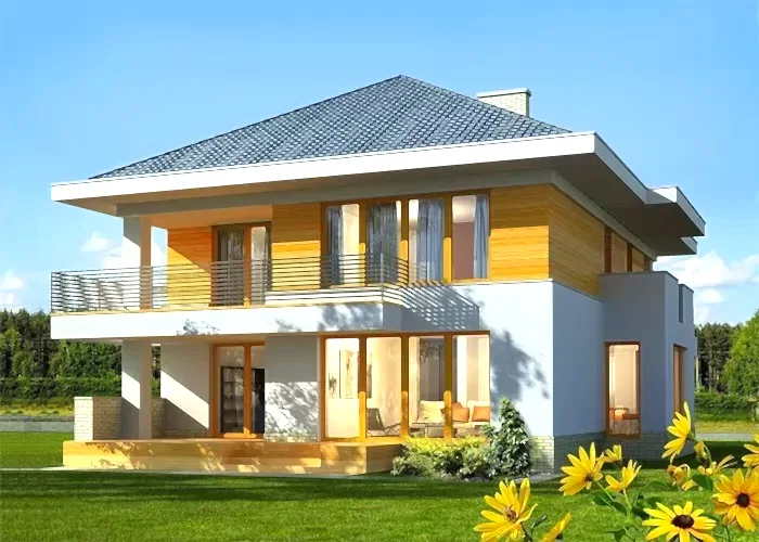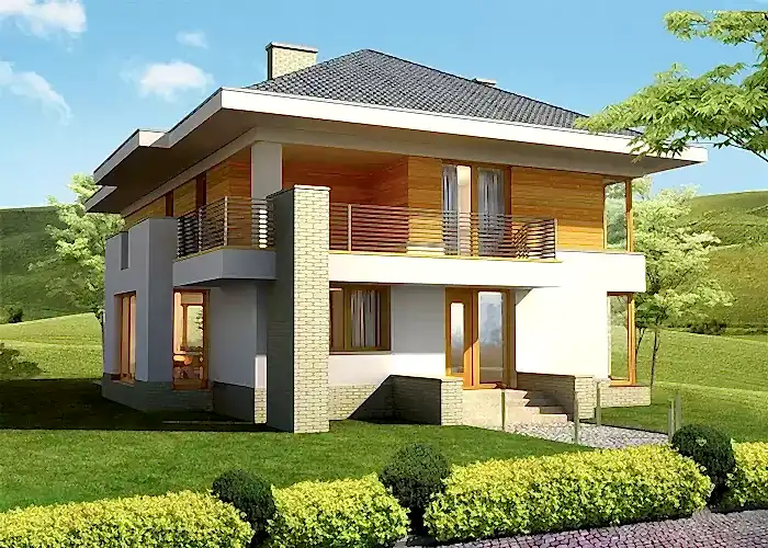 Проект "Зигрид " - прекрасный двухэтажный дом для постоянного жилья из газоблока с балконом, с террасой.Площадь Байтурсынова, 57 194.72 кв.м. с размерами 12x16.