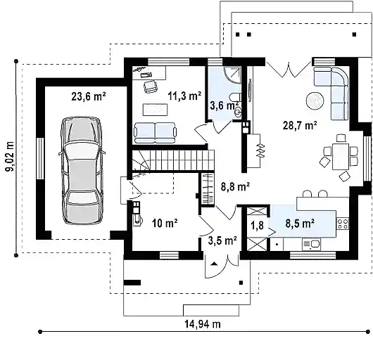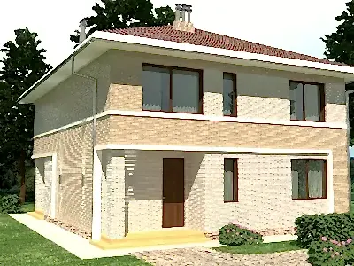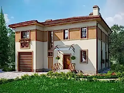 Проект "Аэнна " - красивый двухэтажный дом для постоянного проживания из газоблока с гаражом.Площадь Назарбаева, 132 168.6 кв.м. с размерами 14 на 9.