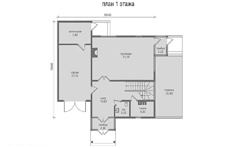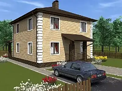 Проект "Богард" - красивый двухэтажный дом для постоянного жилья из газоблока с гаражом, с террасой, с баней.Площадь Сатпаева, 141 149.34 кв.м. с размерами 10 на 10.