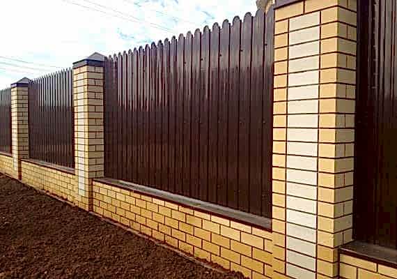 Столбики из металла обходят кирпичами, благодаря чему образуются «тумбы». Сверху устанавливаются колпаки из металла или пластика. Различий по большому счету нет, везде Пин Ап свои плюсы и недостатки. Нет ничего идеального!
